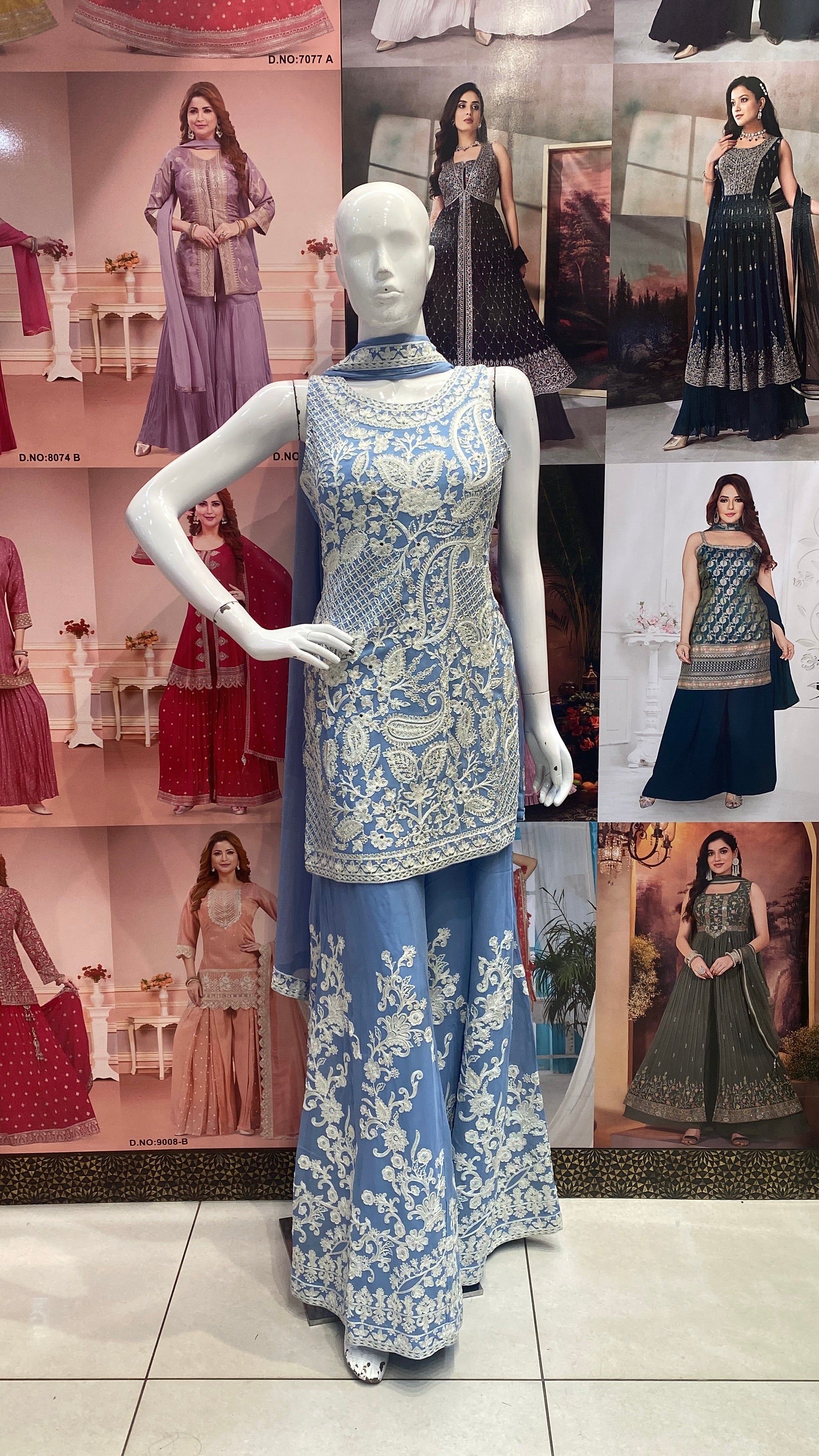 Blue handwork Gharara Pattern dress